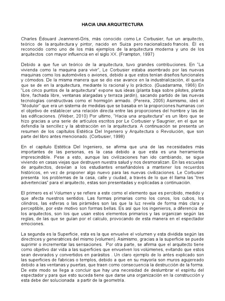 Hacia Una Arquitectura Le Corbusier Pdf Gratis